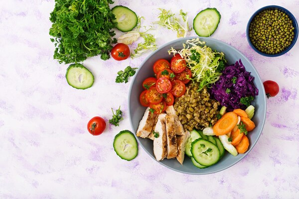 Этот салат богат белком и полезными жирами и отлично подойдет для обеденного приема пищи.